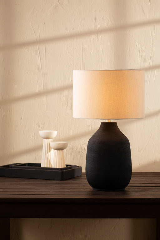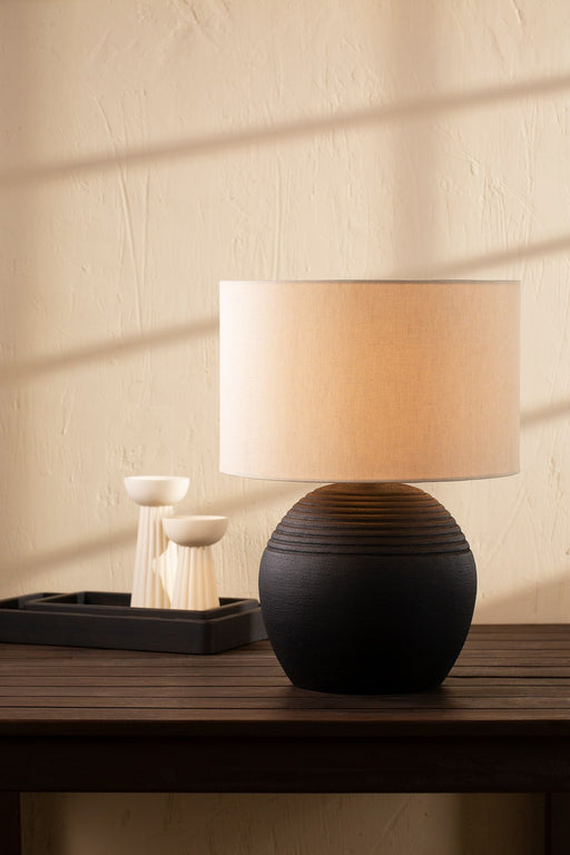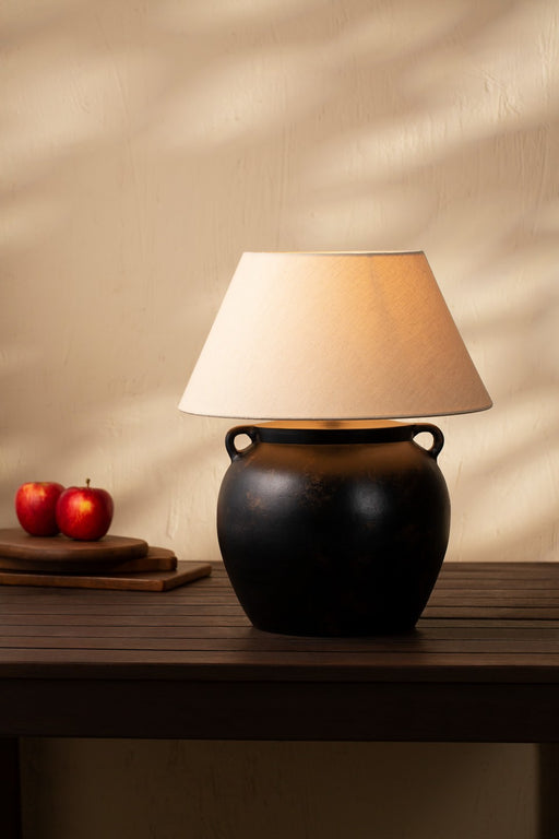 Salt & GreyInspired by vintage clay jars, this lamp's handle-like detailing adds character to the design, while the chambray fabric shade emits a warm and inv...