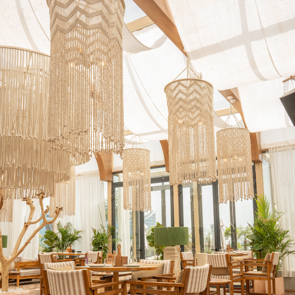 Boho chic meets elegance at One8 Commune Jaipur! Our cotton tassel chandeliers, jute chandelier, clay pieces, and boho mirror add a touch of sophistication while blending seamlessly with the natural outdoor setting.